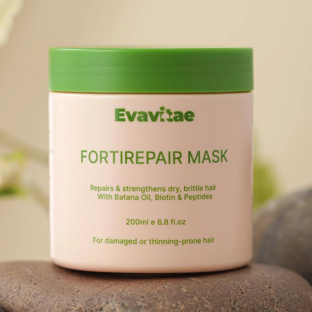 - Finish once or twice a week with the Evavitae FortiRepair Mask for deep conditioning and long-lasting moisture, sealing in the benefits of the serum and shampoo for stronger, healthier-looking hair.