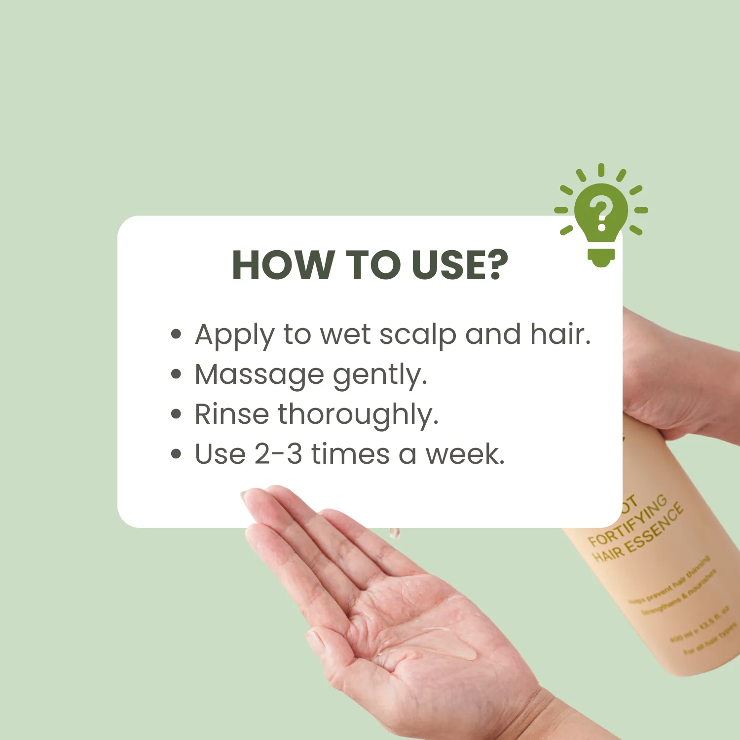 • Cleanse – Wash with the Root Fortifying Hair Essence to remove impurities and strengthen roots.