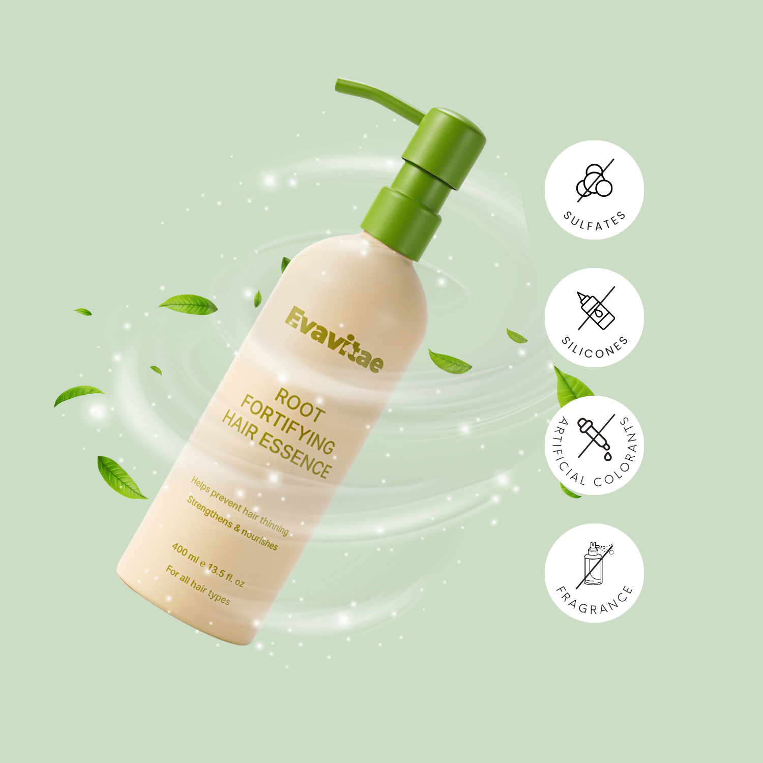 Experience gentle, science-backed care with Evavitae Root Fortifying Hair Essence,